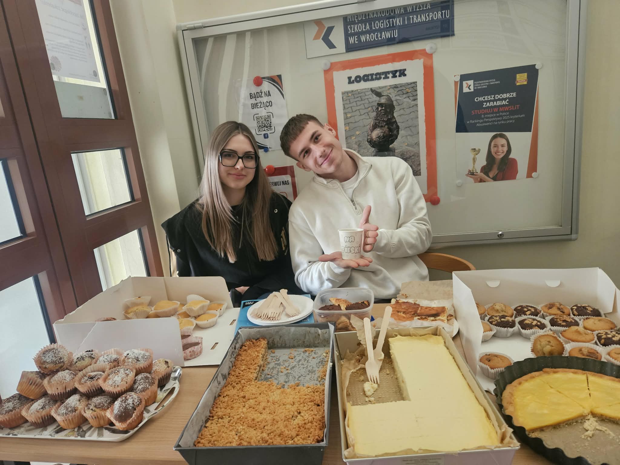 30 marca 2026 r. w MWSLiT odbył się kiermasz ciast, podczas którego studenci przygotowali i sprzedawali domowe wypieki. Już od wejścia można było poczuć zapach świeżo upieczonych ciast, które przyciągały nie tylko aromatem, ale także estetycznym wyglądem.